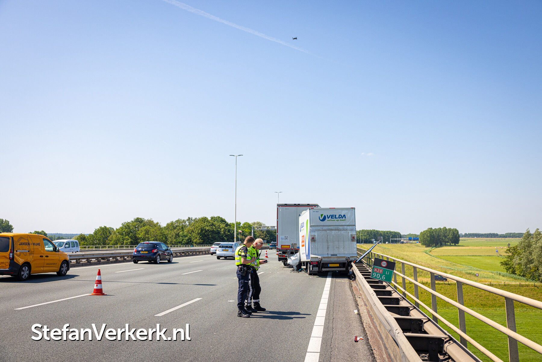 Foto's: Ernstig ongeval letsel vrachtwagen - bakwagen A28 Li 90,6 Hattem