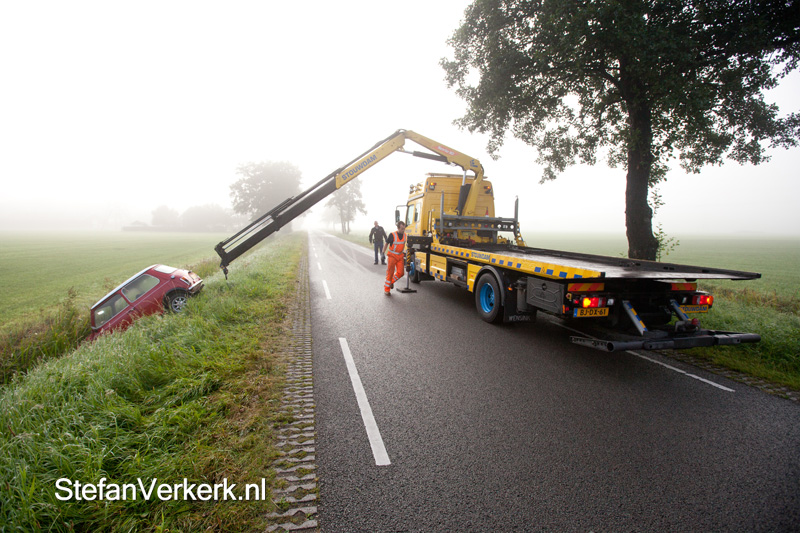 Foto's: Eenzijdig ongeval auto in sloot Plakkenweg Heerde