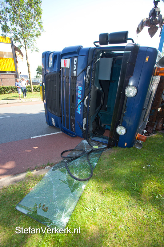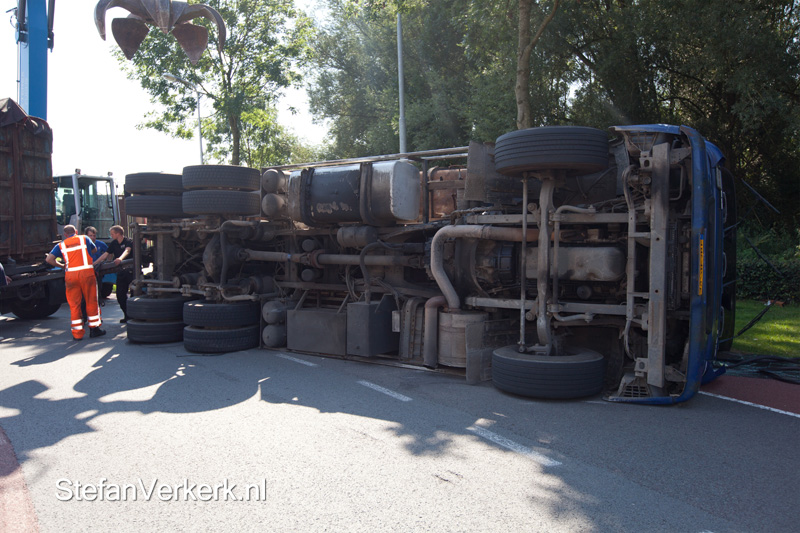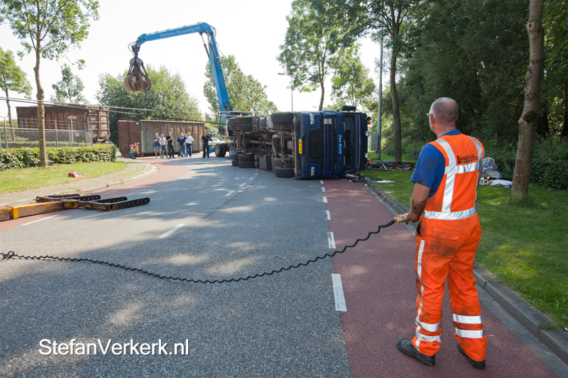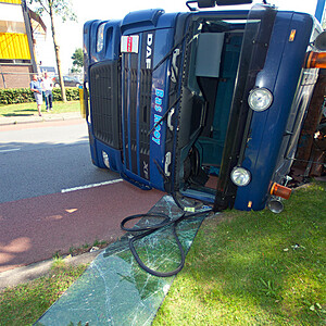 Foto's: Vrachtwagen gekantelt Marsweg Zwolle