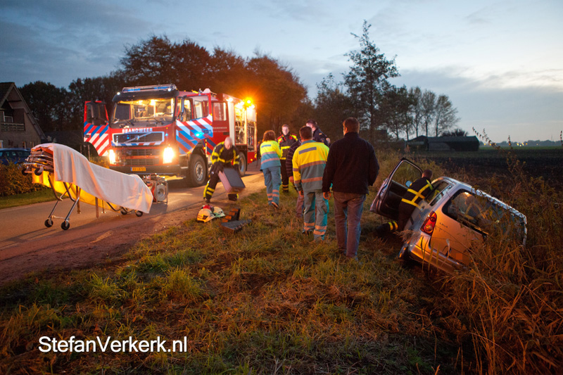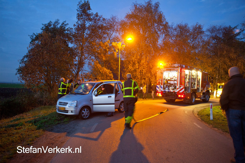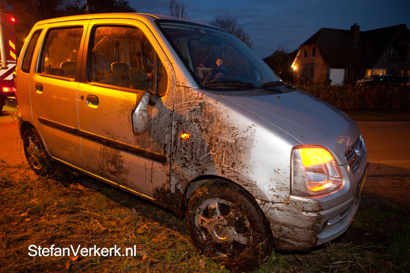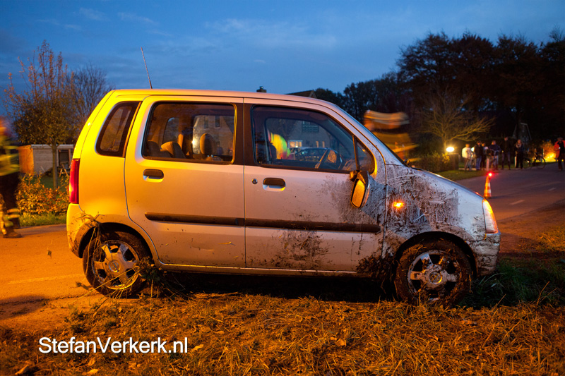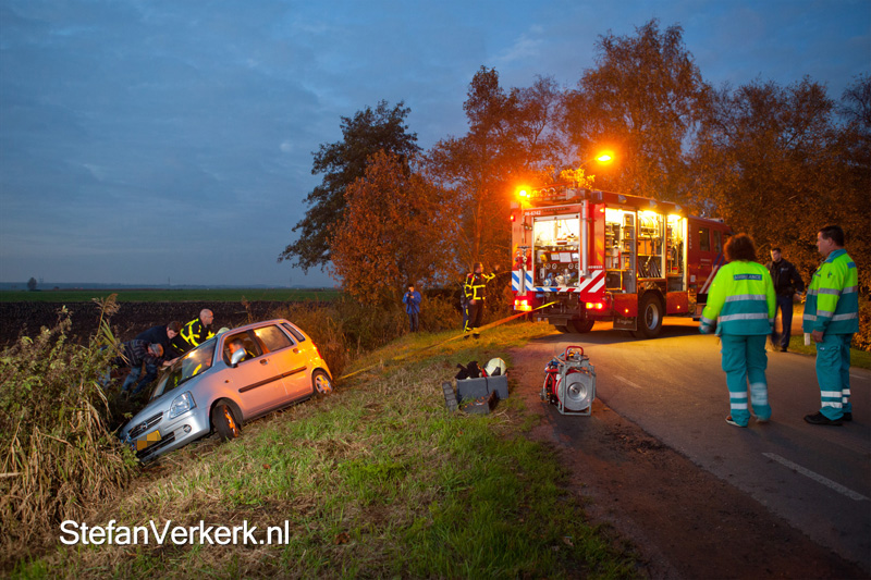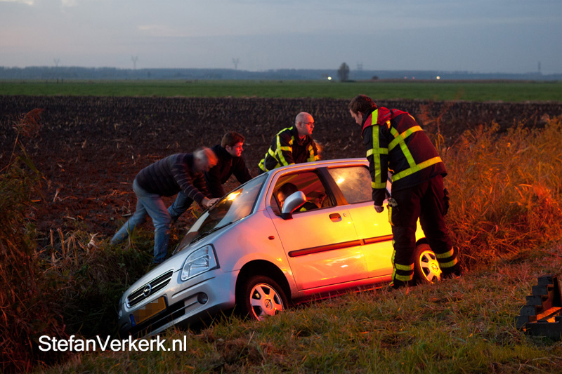Foto's: Auto in greppel Winterdijk Oosterwolde