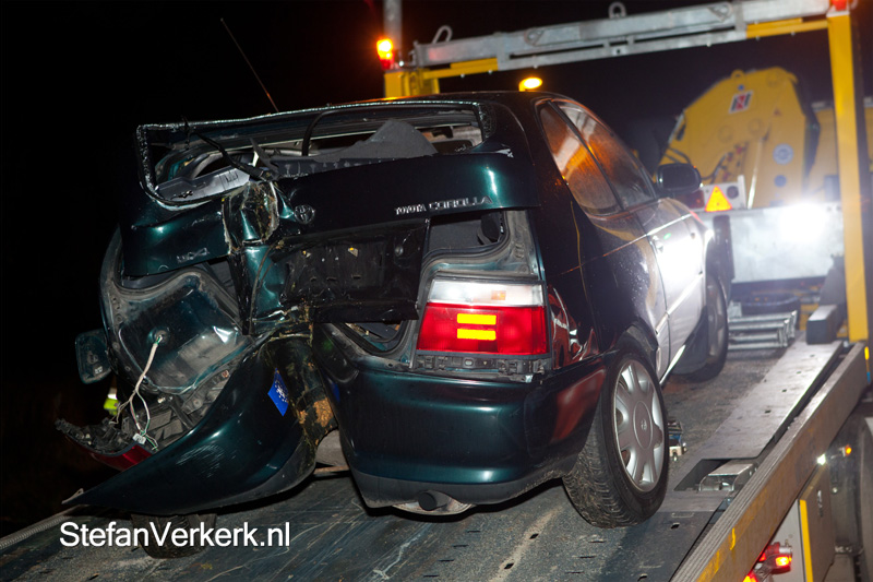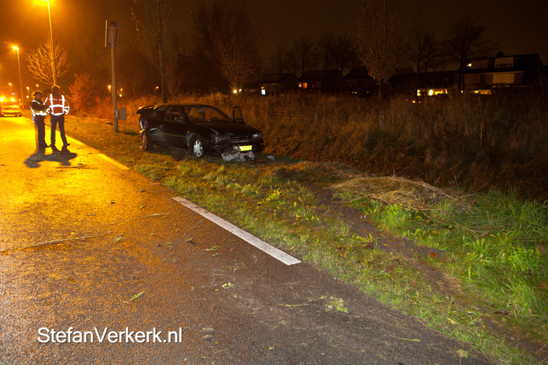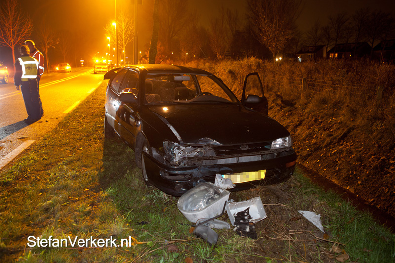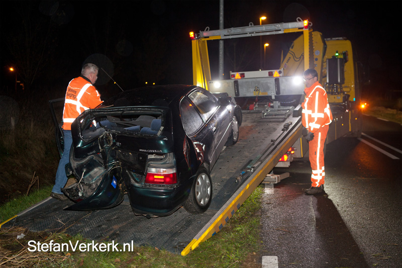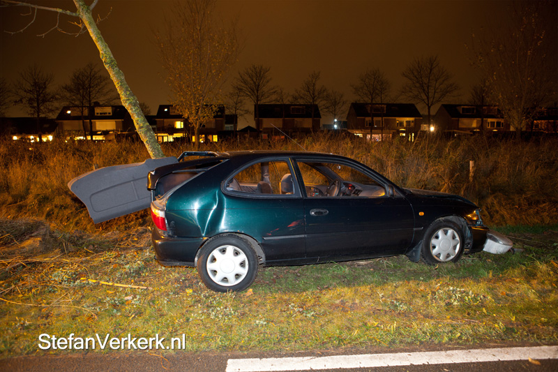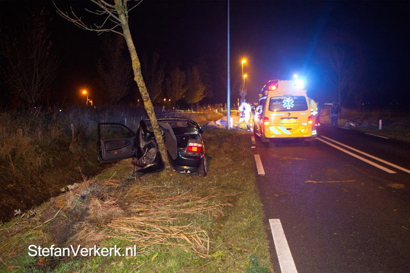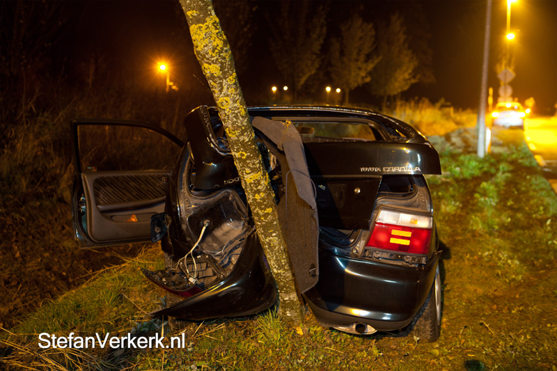 Foto's: Auto tegen boom Oostelijke Rondweg Elburg