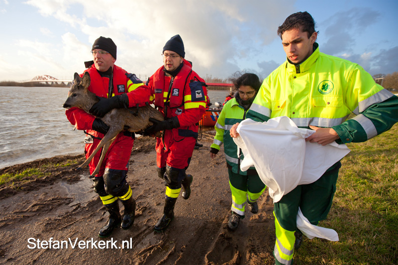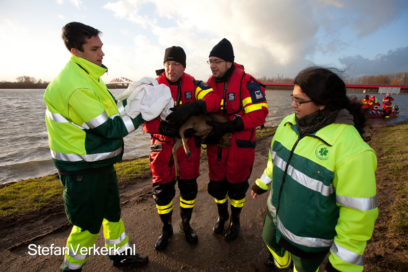 | Nieuwsbericht: | Ree gered uit de overstroomde uiterwaarden |
