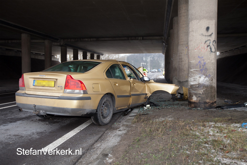 Foto's: Auto tegen pilaar viaduct Ordelenseweg Zwolle