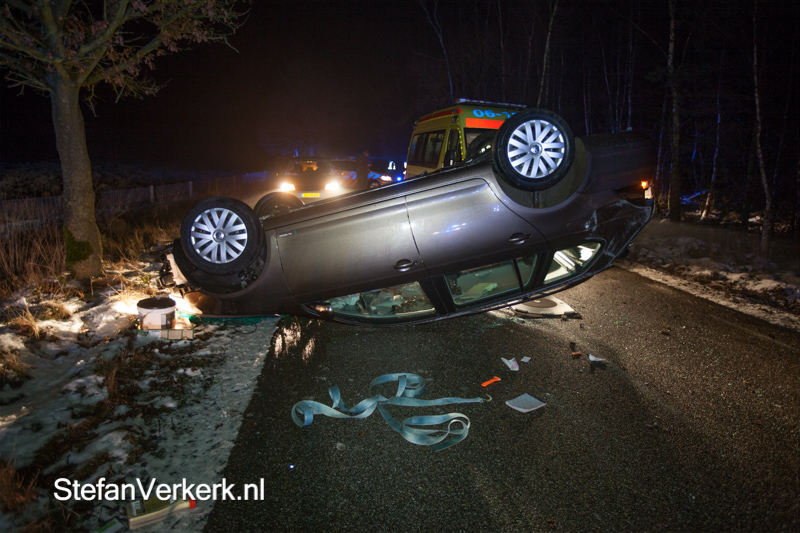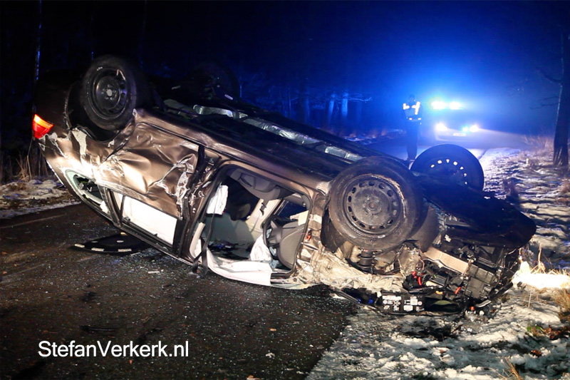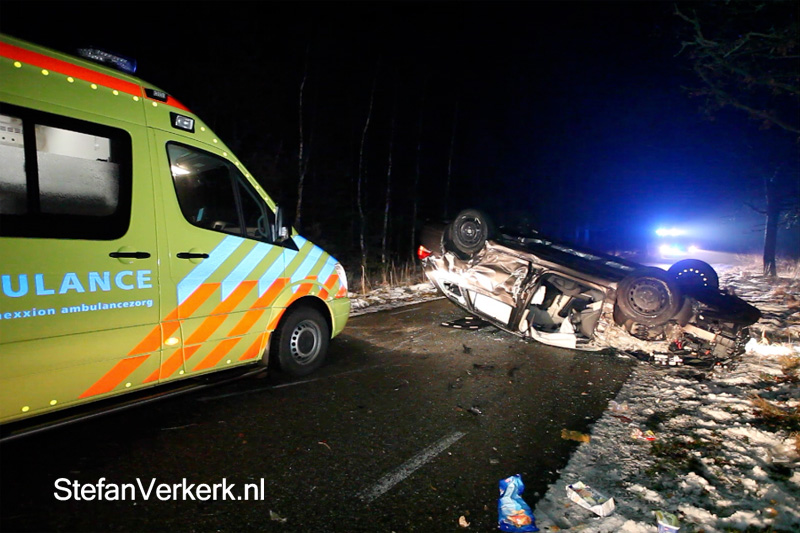 Foto's: Auto over de kop Nieuwe Zuidweg Heerde