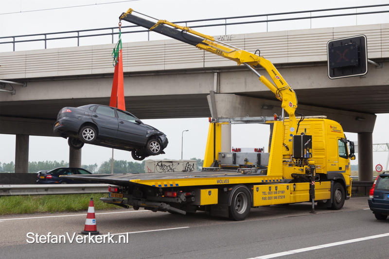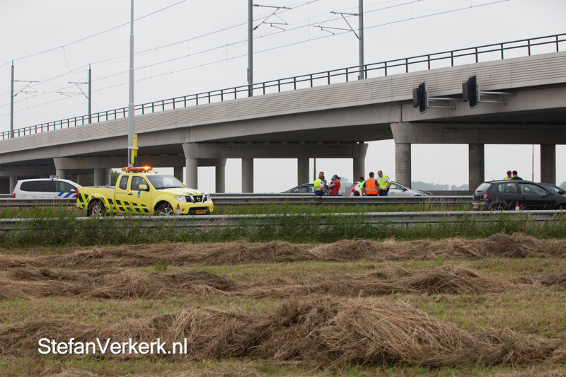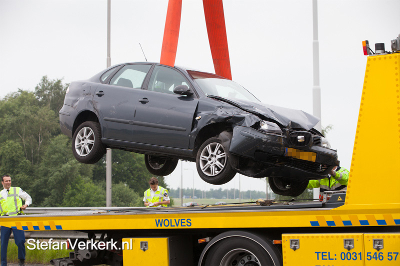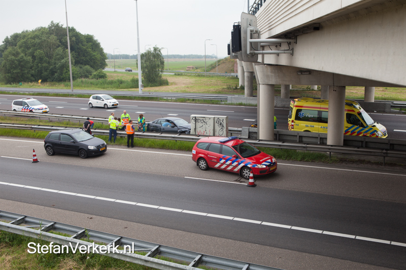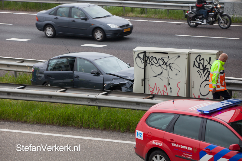 Foto's: Auto tussen vangrails A50 Hattemerbroek